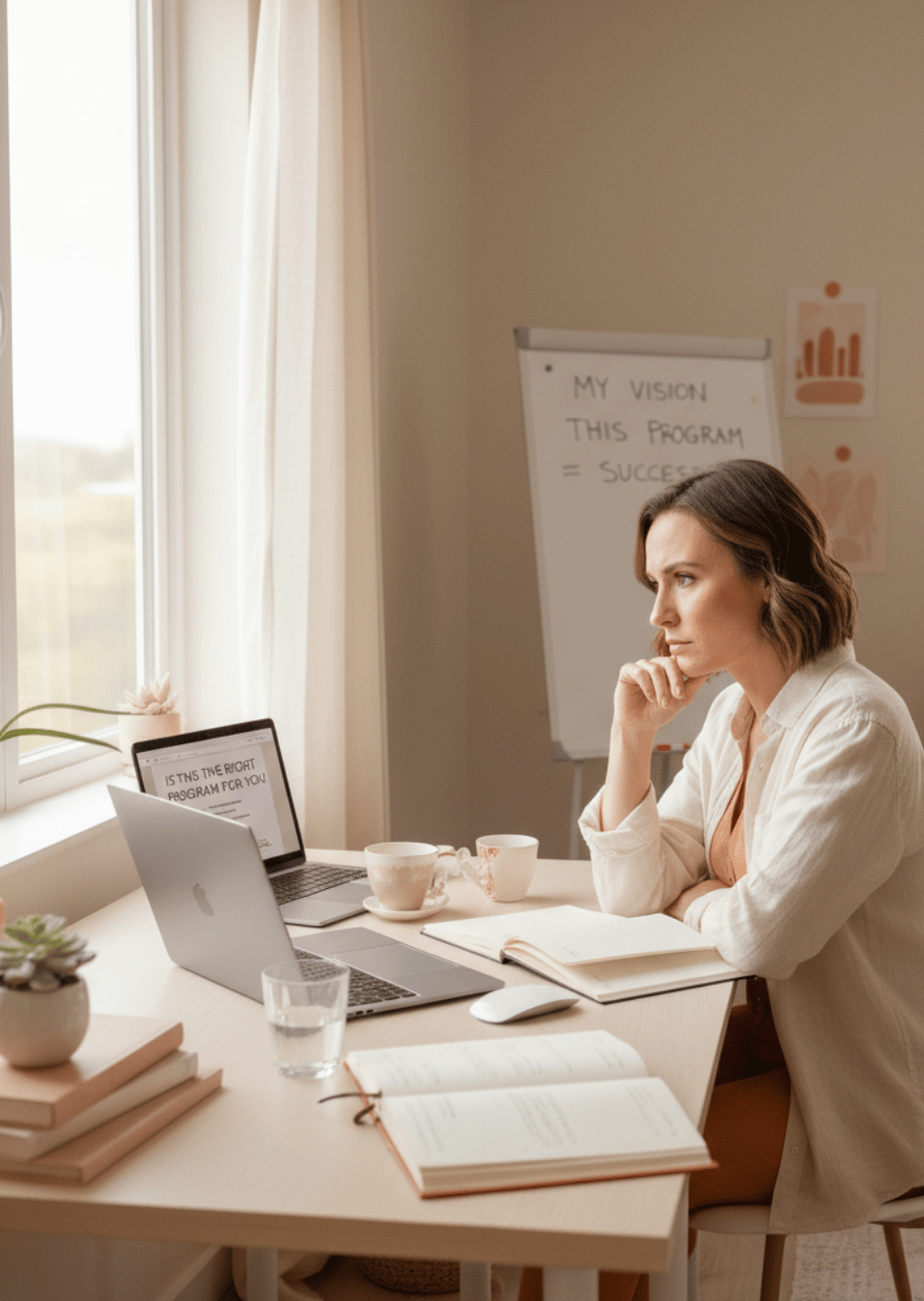 Lakoća pokretanja biznisa nije tečaj koji ti daje informacije, nego konkretan plan i podršku. Nećeš ostati sama – vodim te korak po korak i pokazujem ti što točno raditi. Nema teorije bez primjene. Sve je praktično, jednostavno i stvoreno baš za žene koje žele pokrenuti biznis bez stresa.