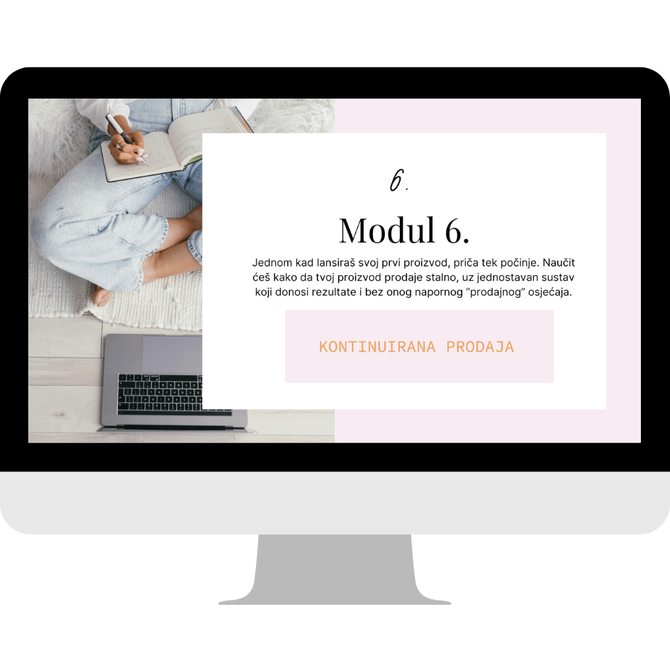 Jednom kad lansiraš svoj prvi proizvod, priča tek počinje. Naučit ćeš kako da tvoj proizvod prodaje stalno, uz jednostavan sustav koji donosi rezultate i bez onog napornog “prodajnog” osjećaja.